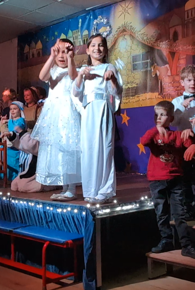The celebrations began in the Early Years, where Nursery pupils charmed parents with a warm and lively Christmas sing-along. Reception continued the festive magic with their traditional performance of A Wriggly Nativity, delighting audiences with their enthusiasm and confidence. KS1 followed with a spirited staging of Whoops-a-Daisy Angel, bringing laughter and smiles to all who attended.